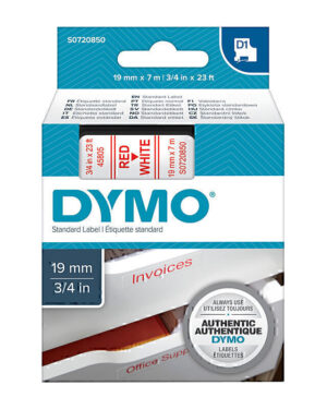 D1 Red on Wht 12mmx7m Tape. Printer Compatibility: DSD45015,DYMO LABELMANAGER 160,DYMO LABELMANAGER 210D,DYMO LABELMANAGER 280P,DYMO LABELMANAGER 360D,DYMO LABELWRITER 450 DUO.