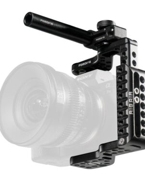 Camera Cage Small is designed for the Sony A7 series and Panasonic GH5 cameras, which utilize a top-mounted XLR audio module for sound recording.