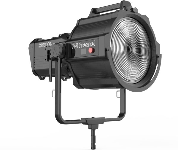 The F14 Fresnel is an electronic Aputure Mount Fresnel modifier with a large 14-inch (350mm) diameter lens and a motorized 18º-45º spot-flood adjustable beam angle range*. Designed for Aputure’s all-new high-output Aputure Mount point-source fixtures, the Electro Storm CS15 and Electro Storm XT26, the F14 Fresnel optimizes and amplifies the light output, providing smooth, remote adjustability and a beautiful light quality only achievable with large Fresnels.
