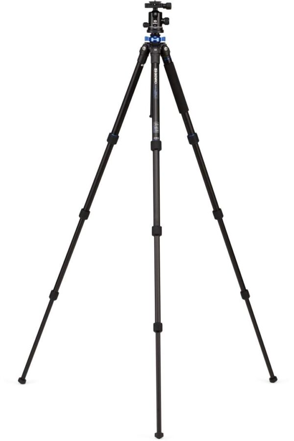 The Benro Carbon Fibre Travel Slim Tripod Kit is a 5-section support with twist locks that open with a quarter turn to allow each section to extend to a maximum height of 51.2″. The tripod’s reverse folding legs can collapse to a compact 12.9″. The Arca-type compatible, single action N00 ball head comes equipped with a quick release plate, and the tripod also includes a carrying case.– Compact folded design – the perfect solution for traveling with a tripod