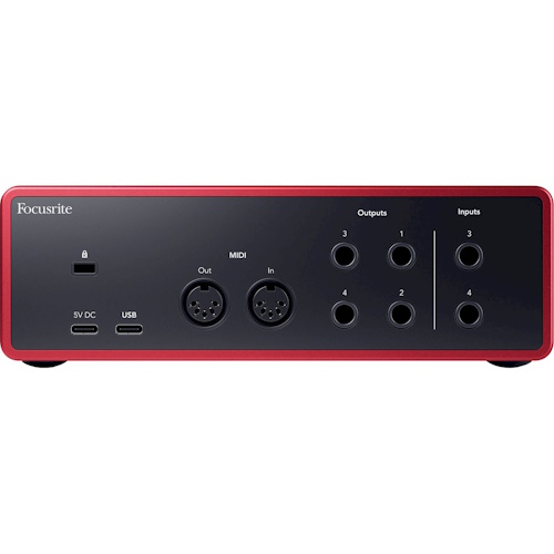 Offering a powerful combination of high-quality sound and user-friendliness in a compact and portable format for recording, podcasting, and streaming, the Focusrite Scarlett 4i4 (4th Generation) 4-in / 4-out USB-C audio/MIDI interface lets musicians and creators capture high-quality audio with no learning curve no matter where they go. The 4th Generation model features new ultra-low-noise microphone preamps with up to 69 dB of gain to capture the full potential of your mics. The upgraded, 24-bit / 192 kHz AD/DA converters provide a huge dynamic range up to 120 dB, matching the quality you’d find in a pro studio. The new Auto Gain mode automatically sets your recording level, and the Clip Safe mode prevents your signal from clipping, ensuring every take is a keeper. The Loopback feature lets podcasters, gamers, YouTubers, and streamers mix audio from other apps running on the computer, with the audio being recorded through the interface. Traditional 5-pin MIDI I/O is provided for seamless integration of MIDI equipment. The 4i4 4th Generation can now work in standalone mode without a computer, useful for live performances or monitoring-only situations.
