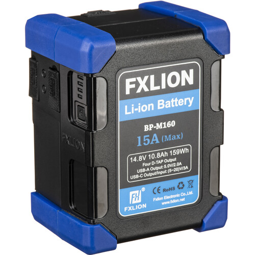 Run your compatible pro video camera using this High-Power 14.8V Square Battery from Fxlion. Designed to pack more juice into a smaller form, this rechargeable lithium-ion battery has a high 159Wh, 10.8Ah capacity. LED lights and other camera accessories can be connected to the USB-A, USB-C, and four D-Tap power outputs, enabling the battery to serve as a power hub for your entire rig, not just your camera. A four-level LED power indicator enables you to keep an eye on the charge state of your battery.
