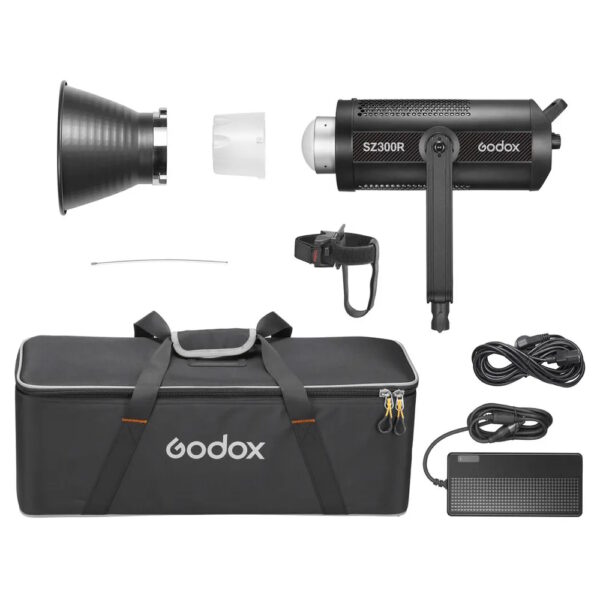 Dimmable from 0 to 100%, you can set the desired intensity and change other settings locally on the fixture or wirelessly, which enables great flexibility in lighting setups. Besides improved workflow with practical control, the light has a silent mode for sound-sensitive situations. The SZ300R is ready for worldwide use via its included power supply. This 330W unit also comes with a reflector for expanded output and a carry case for storage and transportation.