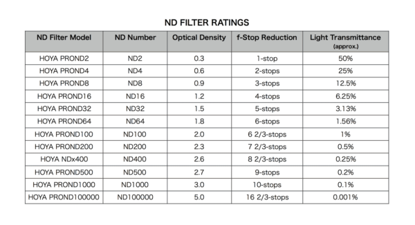 HOYA offers its own exclusive and wide lineup of ND filters that are branded into PROND series for both photographers and filmmakers. PROND filters adopt HOYA’s clear optical glass that is mounted into a lightweight, precisely crafted aluminum frame. The frame has front filter threads so you can attach additional filters or a lens cap.