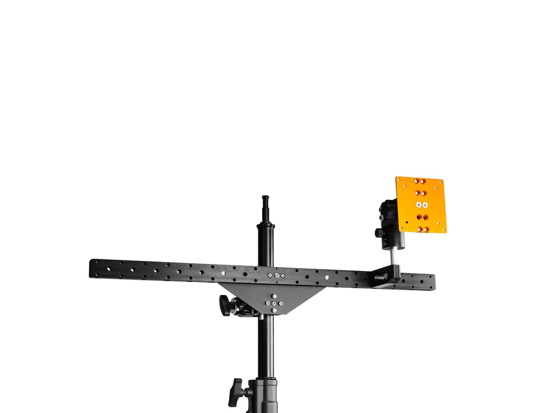 The Baby Pin Bracket with Pin for AXIS Dual Bar features a 3.5 in. offset, providing a 5/8 in. Baby Pin that extends away from the AXIS Dual Bar. With 16 attachment points along the AXIS Dual Bar, you have a multitude of options to securely connect the Offset Baby Pin Bracket with Pin and achieve the desired positioning for your wireless receiver, transmitter, antenna, or other 5/8 in. Baby Pin compatible accessories.