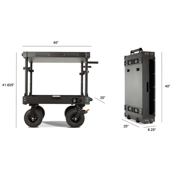 The Voyager NXT uses 10 in. steel casters with our aluminum dovetail adapter. They are easily removable and pack into the cart’s internal space when packed into its convenient transport configuration.