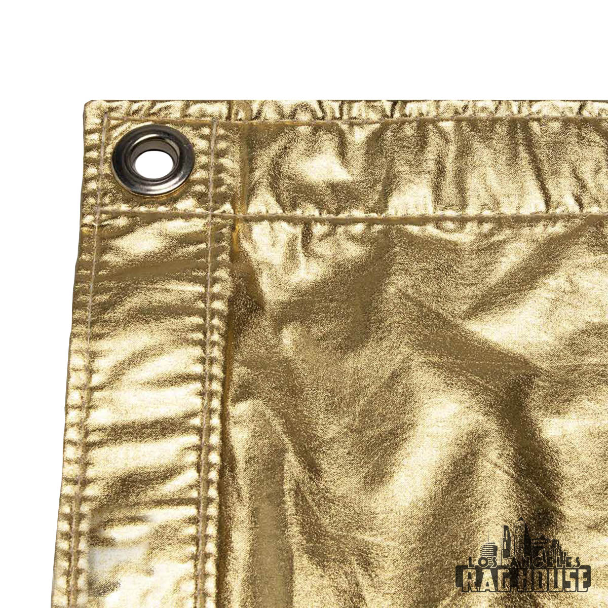 LA Rag House Textile Lame Gold 12′ X 20′. A metallic textile that produces and soft and even source. Elastic sewn into corners for easy installation and comes with ties.