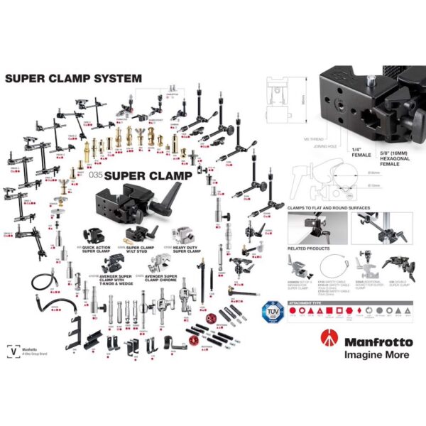 Manfrotto 035 Clamp Super without Stud TUV 13-55mm Range 15kg Payload 1/4” f & 16mm socket