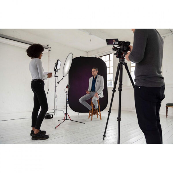 All of our Collapsible Backgrounds can be supported at the necessary height using the Manfrotto Magnetic Background support system.