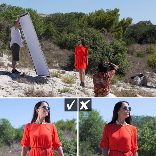 The Skylite panels are the go to solution for location imagemakers who need to diffuse or reflect their light source in the most demanding situations. The lightweight, rapid assembly aluminium rigid frame offers ultimate stability even in windy conditions, whilst the clip on covers offer a complete range of diffusion and reflective surfaces. Each framework collapses down into a neat, compact and very portable rigid carry case. An elastic cord runs through the aluminium making it impossible to lose parts or leave anything behind.