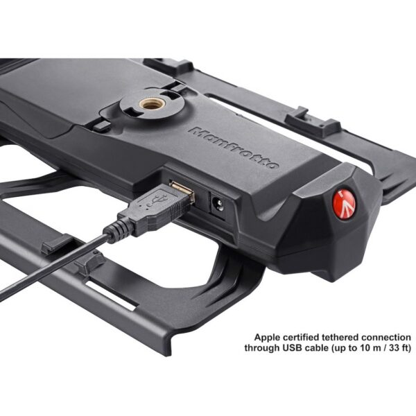 Manfrotto’s Digital Director is the only Apple certified (MFi – Made for iPad Certification) electronic device that connects a wide array of Canon and Nikon DSLRs models* and iPad Air 2 via a reliable USB cable. Digital Director features a dedicated CPU (micro-processor ARM® Cortex®-A8) that works with the Digital Director App to interface the iPad and camera, enabling the iPad to control key camera parameters. Video streaming between devices is smooth, consistent and latency is extremely low. Download speed for RAW and JPEG images to the App is incredibly fast.