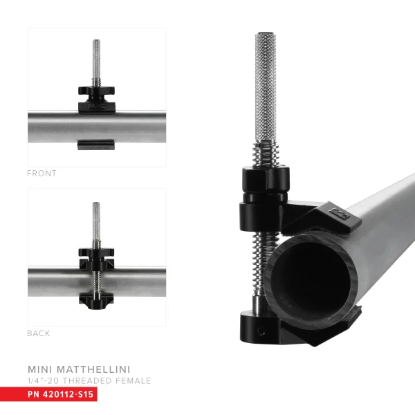 MINIGRIP – A whole new family of smaller mounting devices used for clamping and holding a wide variety of production tools and accessories. When used with Matthews’ new ROADRAGS kit, the MINIGRIP system eliminates the need for extra stands…the MINIGRIP kit consists of four lightweight 2″ MiniGrip Heads with 3/8″ and 5/8″ mounting holes… two new Mini-Matthellini Clamps… which are half as large as the regular Matthellini but with just as many uses and two 20″ arms.