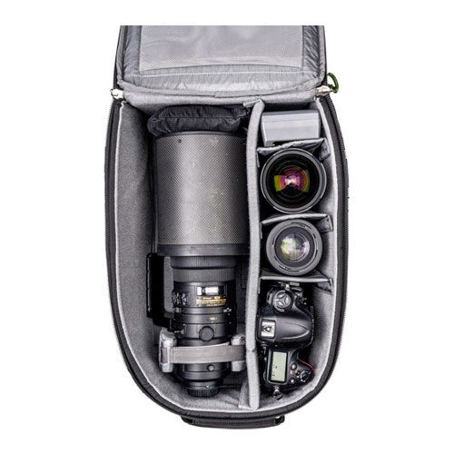 The Mind Shift Firstlight 30L Backpack has an adjustable, contoured harness system and is designed for travelling photographers who need a high capacity carry-on bag that’s comfortable enough for all-day wear. The backpack is extremely versatile and accommodates a huge range of gear. It can hold a DSLR with 400 f/2.8 lens attached, 4-6 standard zoom lenses, 1 flash, and even a 3L hydration bladder. It also has a dedicated laptop compartment and an external tripod attachment point making it the ultimate gear transport solution.