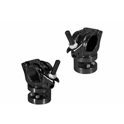 The base model of LP eye coupler is a regular clamp to use on pipes or trusses. Made from aluminium alloy, it can be tightened with a wingnut and has a 13mm hole for mounting lights and other accessories. It can support a payload up to 500kg and works on pipes ranging from 48mm to 52mm