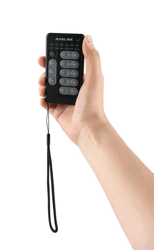 The Nanlink WS-RC-C2 Remote control allows you to remotely adjust CCT colour and brightness on any Nanlite or Nanlux lights that have built-in wireless. See the compatibility list below.
