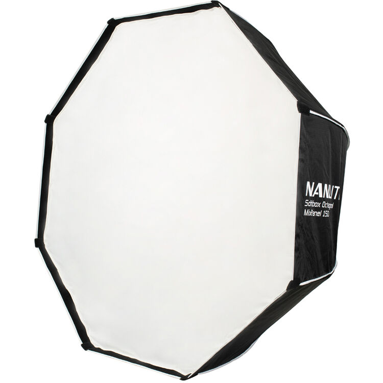 The Nanlite Octagonal Softbox softens and broadens the light from the MixPanel 150, reducing contrast and creating natural circular catchlights ideal for portraits, closeups, fashion work and talking-head setups. It uses both inner and outer diffusion for smoother output, a silver interior to maintain intensity and a fitted fabric grid to tighten beam direction and limit spill, giving you controlled, even lighting in compact setups.