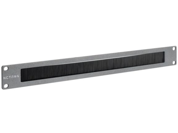 The NETRON Net Plate Brush is a 19″ 1U rack plate with a nylon cable pass through.