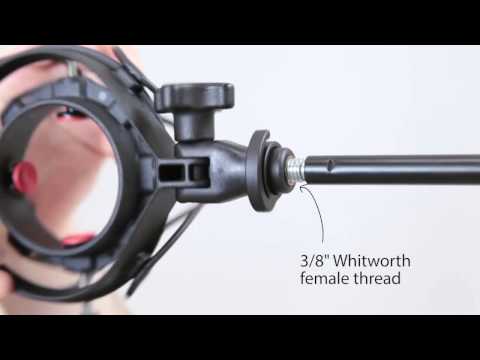 Universal microphone shock-mount ideal for microphones weighing 400 grammes or less (will hold up to 750 grammes in a vertical position) & between 18mm and 55mm in diameter.