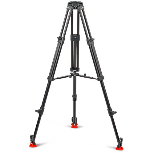 The head allows you to tilt forward so you can tilt straight down and tilt almost straight up as well, plus the 75mm half-ball has an integrated flat base for additional mounting options. The two-stage aluminium legs are strong and torsionally stable while being lightweight and easy to use. The system has a height range of 31.9 to 67.3″ when using the included mid-level spreader, which simplifies shooting on uneven/rocky terrain, and even stairs without having to remove the spreader. The legs feature a 75mm bowl base for quick levelling of your head and collapse down to just over 34″ in length for travel.