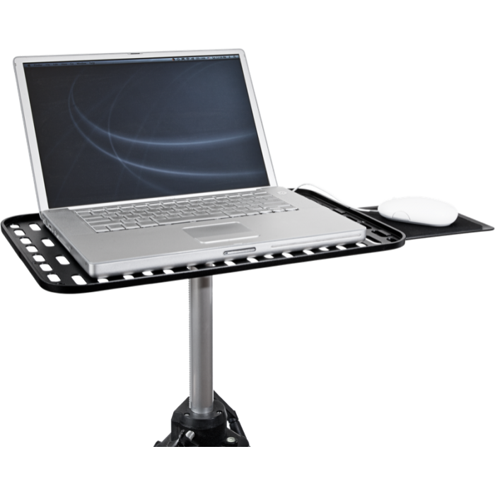 The i-Visor Pro MAG Platform is a magnesium alloy platform that is designed to be extremely lightweight yet rugged enough to support the heaviest 17″ laptop. Its unique design accommodates a passive cooling feature. Unlike any other support platform it comes with a Mouse Tray that quickly fastens on and will support even heavy-handed mouse users. The i-Visor Pro MAG Platform is made to fasten on to i-Visor Tripod (IV1230) or any other rugged tripod with a 3/8″ stud.