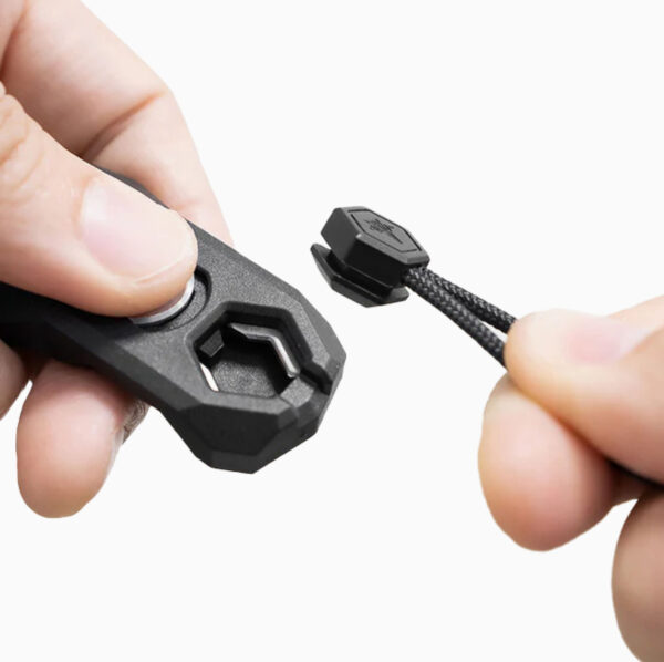 Silence Corner Squid Links are rapid-connect couplers so you can quickly and securely attach gear to a strap. A Squid Link consists of two parts. The receiver mechanism can be attached to a strap as wide as 25.4mm with a second eyelet for straps up to 10mm wide. The second part is a small lanyard attached to a fob that magnetically pairs to the receiver and locks into place. The lanyard can be threaded to any eyelet it can pass through on a camera, binoculars, phone case, or anything you want to keep at hand yet quickly have access to. The release switch opens the channel, but the lanyard will not release until you give it a good tug upwards, so no surprises.