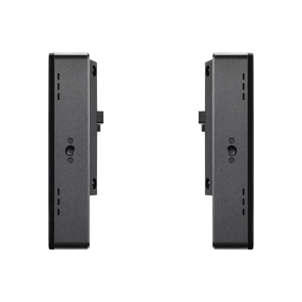- Four 1/4″-20 mounting threads on left, right, bottom, and back of the monitor