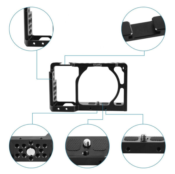 SmallRig Sony A6000/A6300/A6500 ILCE-6000/ILCE-6300/ILCE-A6500/Nex-7 Cage 1661 is a formfitting aluminum exoskeleton that protects your camera and offers mounting options to attach accessories. With the camera in the cage, you still have access to the SD card slot, battery compartment, and all camera controls.