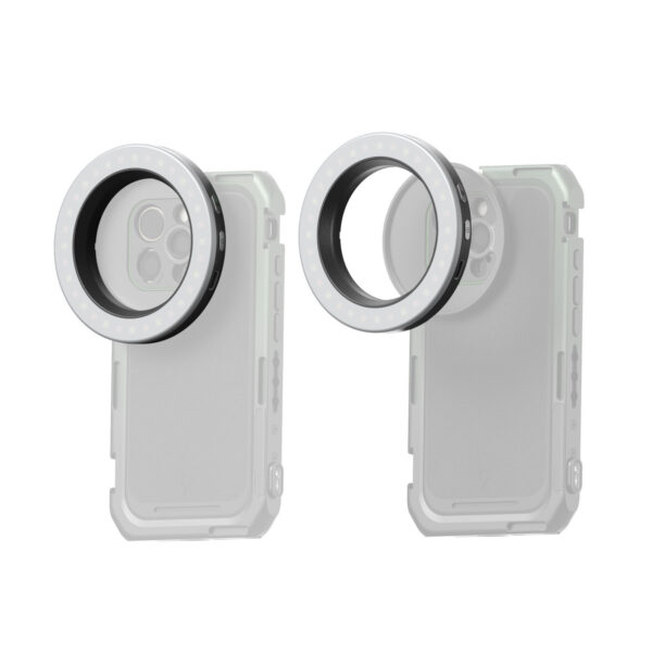 SmallRig Vibe P30 67mm Ring LED Video Light 4873 is a lightweight ring fill light designed for versatile applications. It can be easily attached to a phone case or cage using the 67mm threaded adapter or quickly mounted onto a phone with a phone mount. Furthermore, it can be installed directly on a 67mm camera lens, making it suitable for a variety of shooting scenarios. Compact and lightweight, it’s akin to a women’s powder compact, making it effortlessly portable.