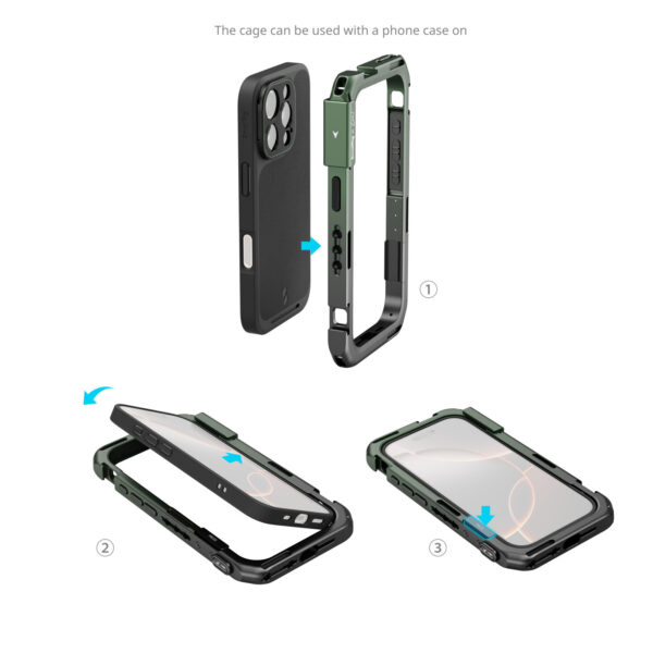 Note: The phone case dimensions are 154 x 75.7 x 11.2mm / 6.1 x 3.0 x 0.4in. When using a third-party phone case with the cage, ensure accurate measurements for compatibility.