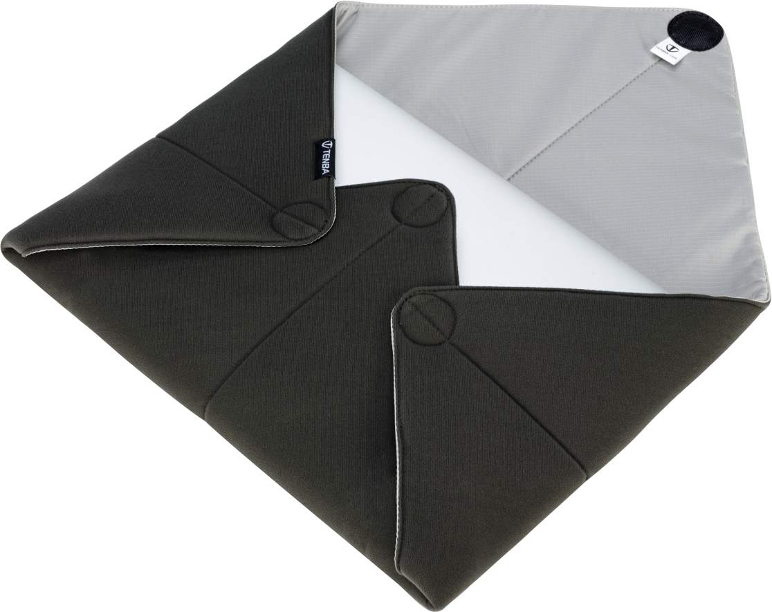 Tenba’s protective wraps are multipurpose, portable padding for lenses, cameras, hard drives, laptops and any other gear that needs a little extra protection. The clear label window and colour options help identify contents quickly. Water-repellent silicone-coated ripstop nylon will not scratch gear. Velcro corners and a soft knit, velcro-compatible fabric allow it to be rolled, folded or wrapped into many configurations and form-fitted around delicate gear.